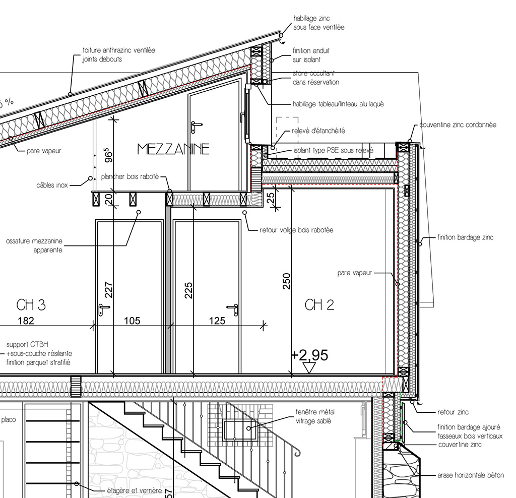 Surface: 74m2 créés sur 2 niveaux + 54m2 rénovation RDC+ terrasse
