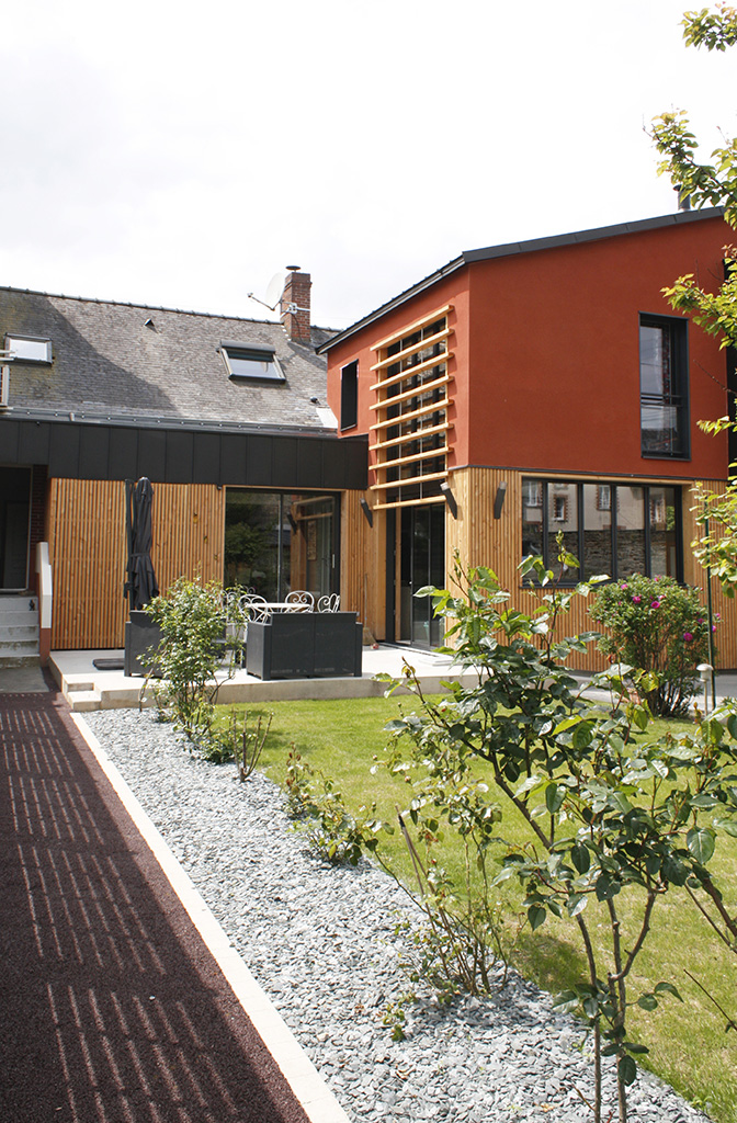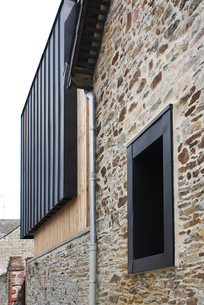 En plein centre de Châteaubriant, dans le périmètre de monuments historiques, les propriétaires souhaitent aménager leur logement en extension d'un ancien garage pierre. Une intervention contemporaine est privilégiée, venant prendre appui sur les murs pierre existants.